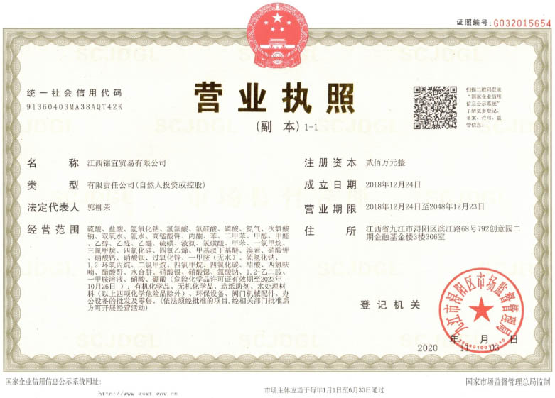 【江西守澤貿易有限公司部分資質】 ※ 企業法人營業執照 ※ 開(kāi)戶許可證 ※ 危險品運輸許可證